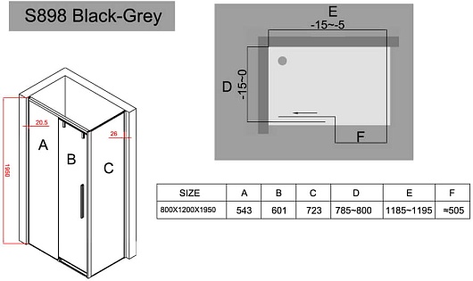 Black&White Душевой уголок Stellar Wind S898 Black-Grey 120x80