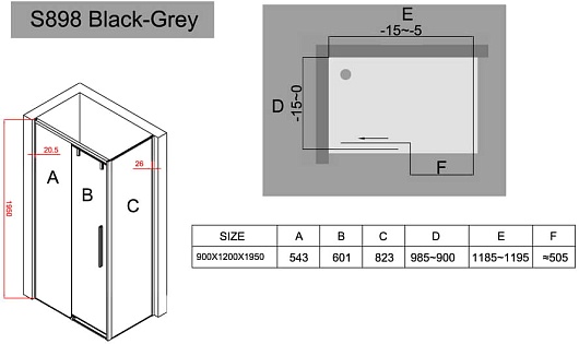 Black&White Душевой уголок Stellar Wind S898 Black-Grey 120x90