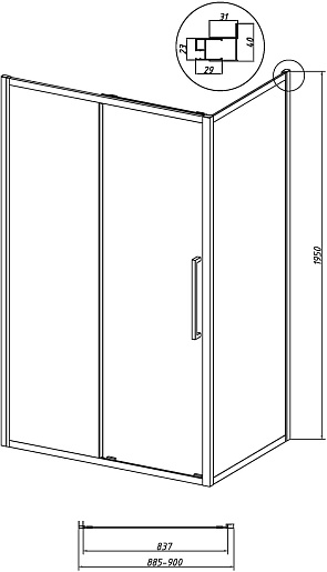 Боковая стенка Grossman Cosmo 90x195 профиль хром стекло прозрачное - арт. 200.K33.02.90.10.00.