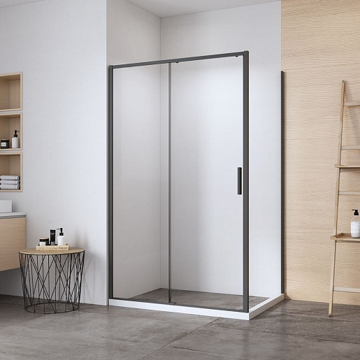 Aquanet Боковая стенка Pleasure Evo 90 AE65-F90-BT профиль черный стекло прозрачное