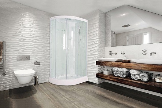 - 100% безсиликоновая сборка за счет наличия на поддоне акрилового бортика, высотой более 2 см, внутри которого устанавливается профиль душевой кабины