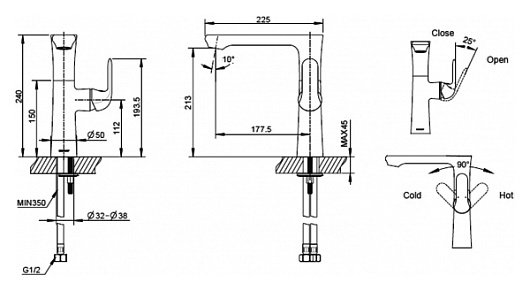 Высота излива, мм: