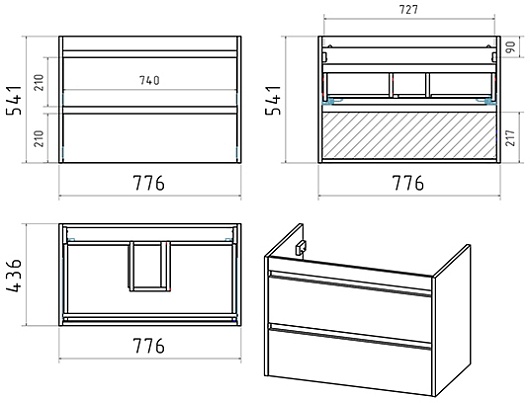 - Противоскользящие коврики по всей нижней поверхности выдвижных ящиков.