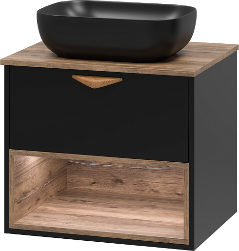 Тумба под раковину Bergen 60 подвесная дуб галифакс олово/черная