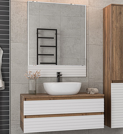Комплектация: тумба, раковина, зеркало, крепеж.