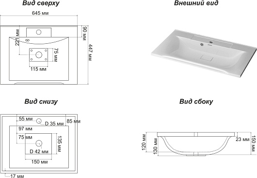Мебельная раковина Brevita Marko Комфорт 65 - арт. 5001650.