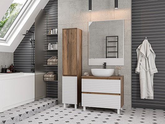 Brevita Шкаф пенал Dakota 35 L дуб галифакс олово/белый матовывй
