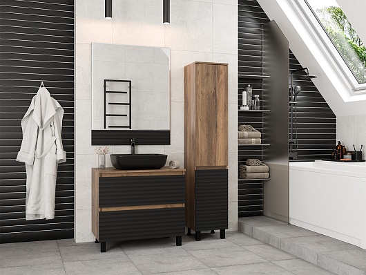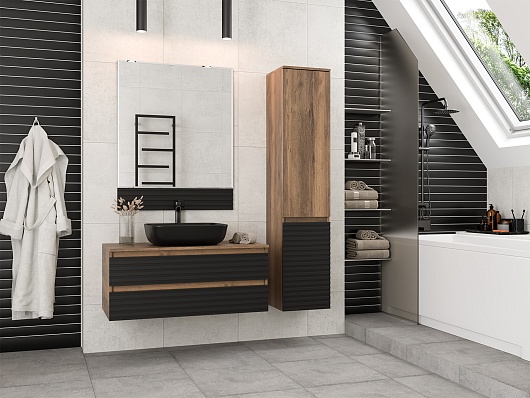 Brevita Шкаф пенал Dakota 35 R дуб галифакс олово/черный кварц