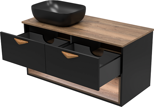 - Цвет: дуб галифакс олово (темное дерево), черный матовый.