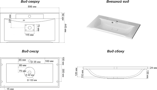 Тумба с раковиной Brevita Balaton 90 белая/серая - арт. BAL-06090-01-012Я / 5224900.