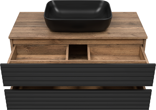 Тумба под раковину Dakota 100 подвесная дуб галифакс олово/черный кварц