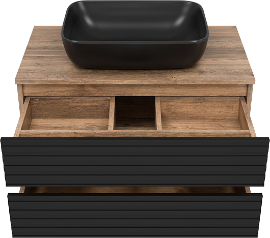 Тумба под раковину Dakota 80 подвесная дуб галифакс олово/черный кварц