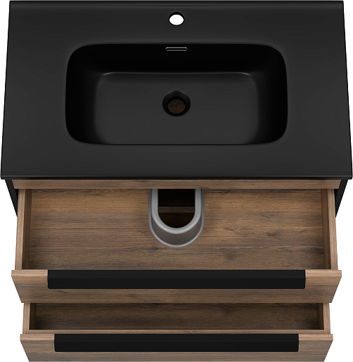 Тумба под раковину Monsour 80 подвесная дуб галифакс олово/черный кварц