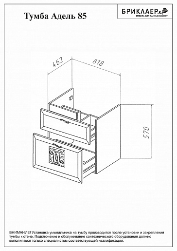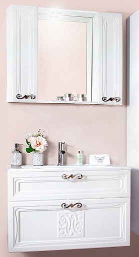 - Тумба Адель 85: 2 выдвижных фасада, ручки хром, система плавного выдвижения.