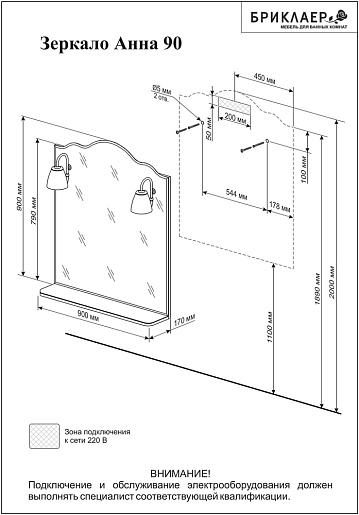 Бриклаер Мебель для ванной Анна 90 белая R