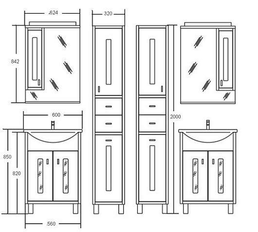 - Тумба с раковиной Бриклаер Бали 60: раковина, распашной фасад - 2 шт., ручка - 2 шт.