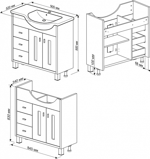 - Тумба с раковиной Бриклаер Бали 90 L: раковина, распашной фасад - 2 шт., выдвижной ящик - 3 шт., ручка - 5 шт., вкладная полка