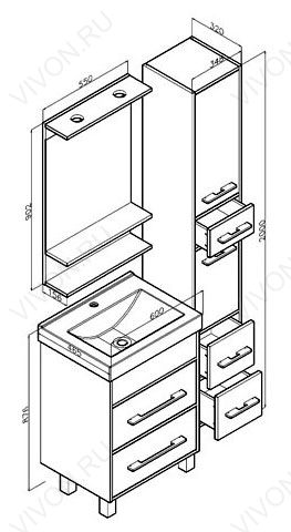 - Тумба с раковиной Бриклаер Чили 60: раковина, выдвижной ящик - 2 шт., ручка - 2 шт.