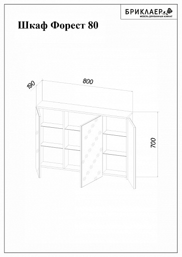 - Зеркало Бриклаер Форест 80: шкафчики, полочки, подсветка в козырьке.