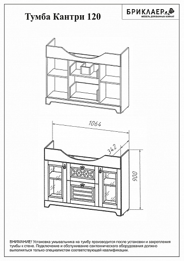 - Тумба Кантри 105: распашные фасады, фурнитура бронза