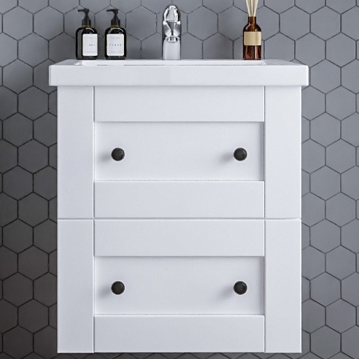 Подвесная тумба с раковиной Бриклаер Хелена 60 рамочная белая - арт. 4627125416408 / 4627125414435.