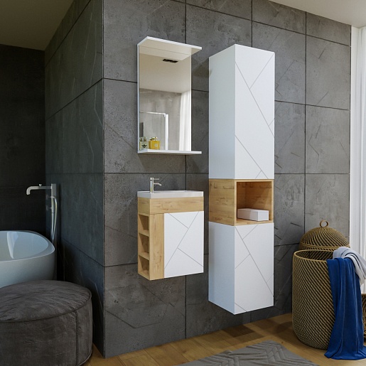 Тумба под раковину Кристалл 40 белая/дуб бунратти