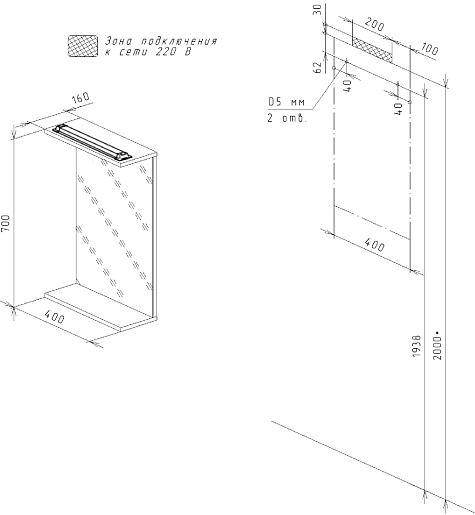 - Размер корпуса (ШxВxГ): 400x500x200 мм.