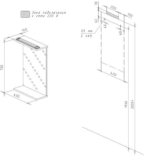 - Размер (ШxВxГ): 200x700x160 мм.
