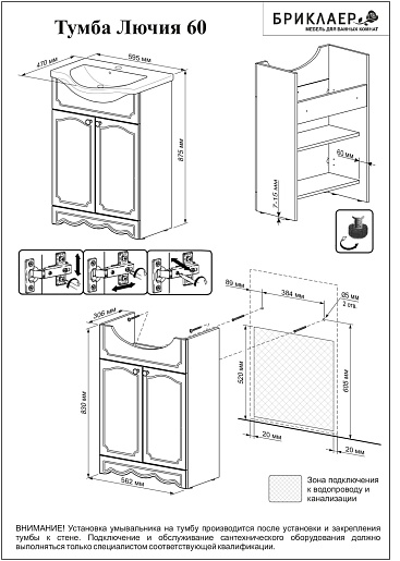 Бриклаер Мебель для ванной Лючия 60 белая, шкафчик