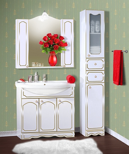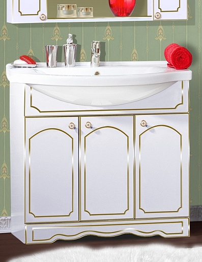 Бриклаер Мебель для ванной Лючия 90 белый глянец/золото