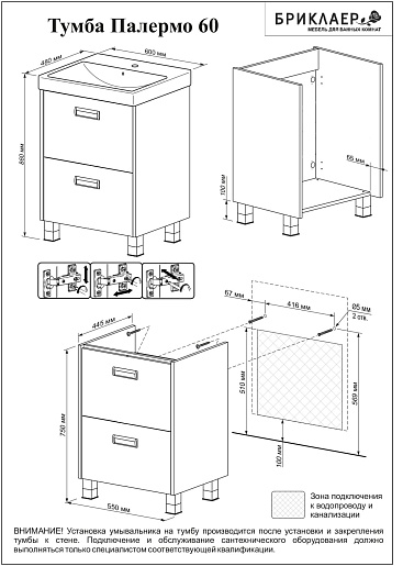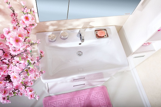 - напольная тумба под раковину: выдвижной ящик - 2 шт, металлические врезные ручки, ножки