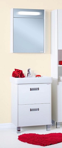 Описание: зеркальный шкаф для ванной с распашной дверцей и внутренней полкой. Встроенная подсветка.