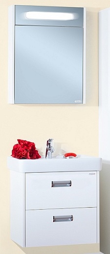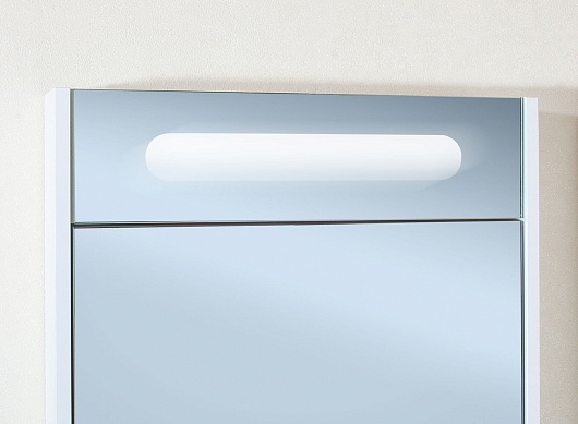 Описание: зеркальный шкаф для ванной с распашной дверцей и внутренней полкой. Встроенная подсветка.