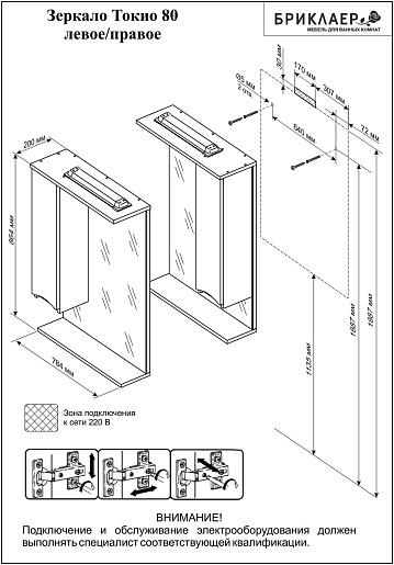 Бриклаер Мебель для ванной Токио 80 L венге
