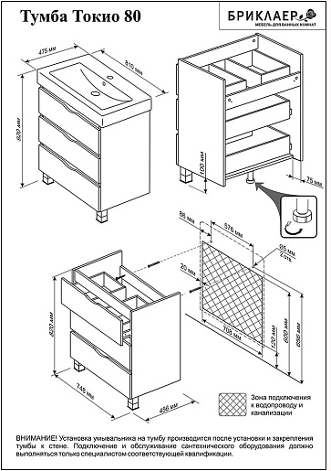 Бриклаер Мебель для ванной Токио 80 R лиственица