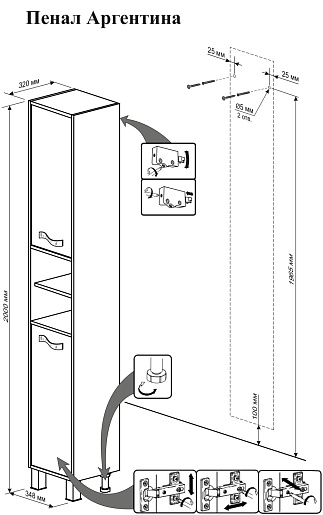 Пенал для ванной «Аргентина 34» универсальный