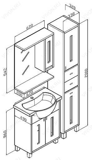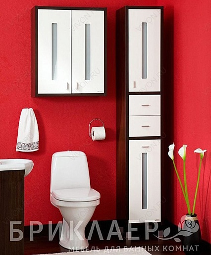 Бриклаер Пенал для ванной Бали 34 с б/к венге/белый