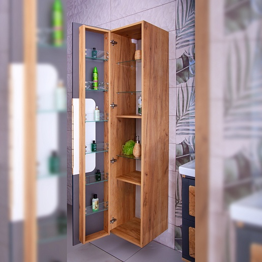 Бриклаер Пенал для ванной Форест 35 дуб золотой/антрацит