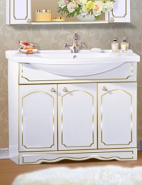 Бриклаер Тумба для умывальника Лючия 100 белый глянец/золото