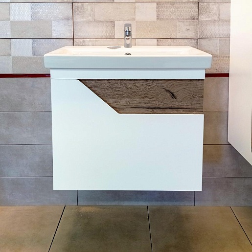 Подвесная тумба под раковину Бриклаер Брайтон 60 белая матовая/дуб кера - арт. 4627125415784.