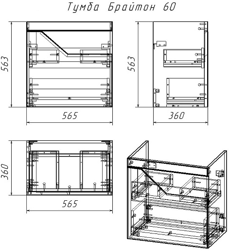 - Направляющие с механизмом плавного закрытия.