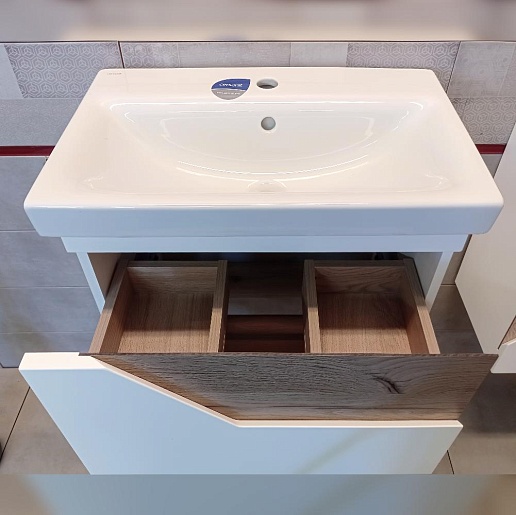 Бриклаер Тумба под раковину Брайтон 60 белая матовая/дуб кера