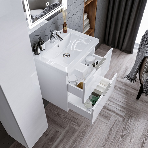 Подвесная тумба под раковину Бриклаер Хелена 60 белая глянцевая - арт. 4627125416354.
