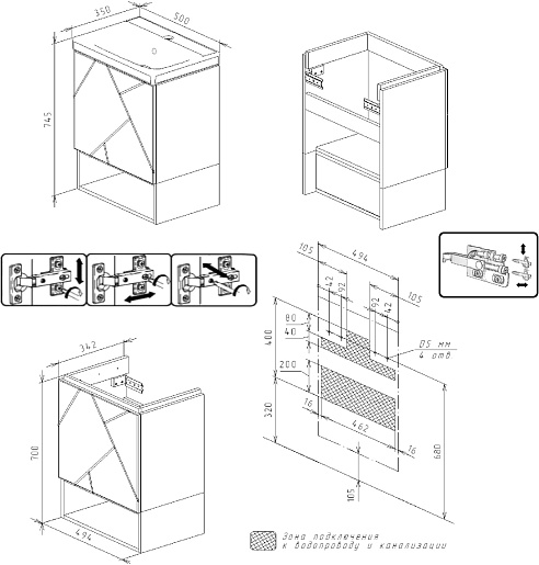 Комплектация: тумба под раковину, крепления.