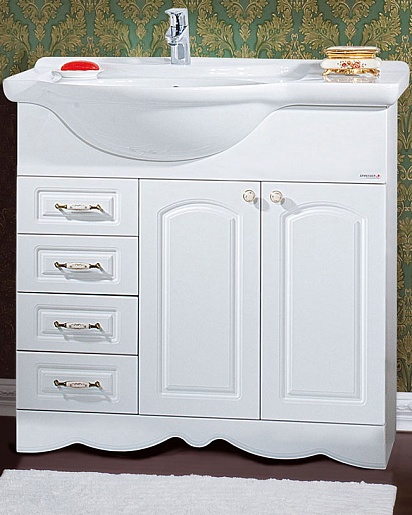 - тумба под раковину Бриклаер Анна 90 белая L: ручка - 6 шт., выдвижной ящик - 4 шт., распашная дверца - 2 шт.
