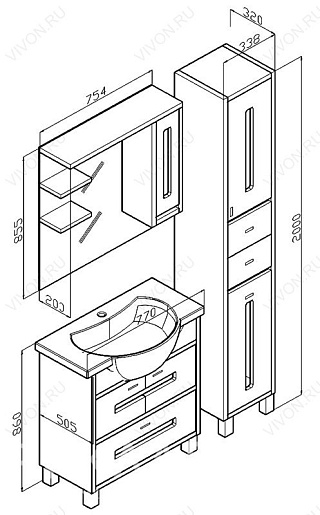 - тумба под раковину Бриклаер Бали 75: распашная дверца - 2 шт., ручка - 3 шт., выдвижной ящик - 1 шт.