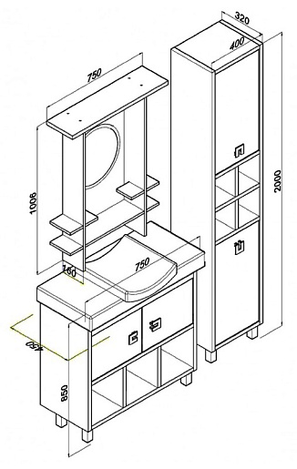Размеры ШхГхВ: 750х450х850 мм