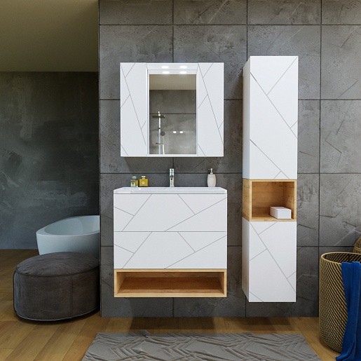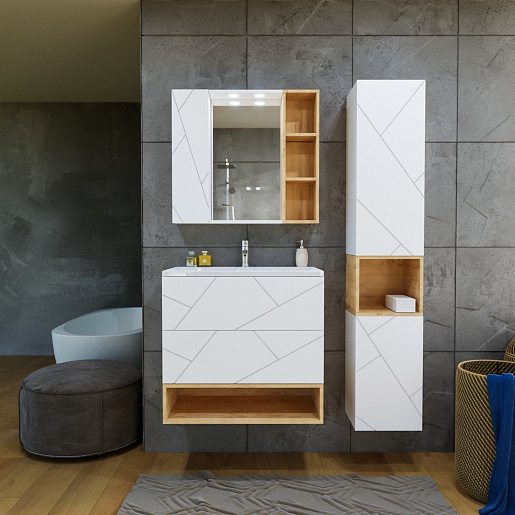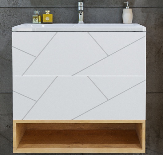 Тумба с раковиной Бриклаер Кристалл 80 с нишей белая/дуб бунратти - арт. 4627125415968 / 4627125414459 / 4627125415906.