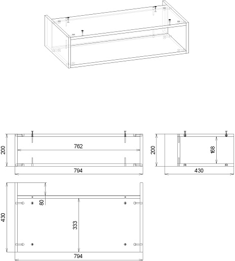 Комплектация: тумба под раковину, раковина, ниша под тумбу, крепления.