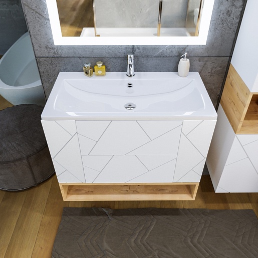 Тумба с раковиной Бриклаер Кристалл 90 белая - арт. 4627125415975 / 4660105230823.